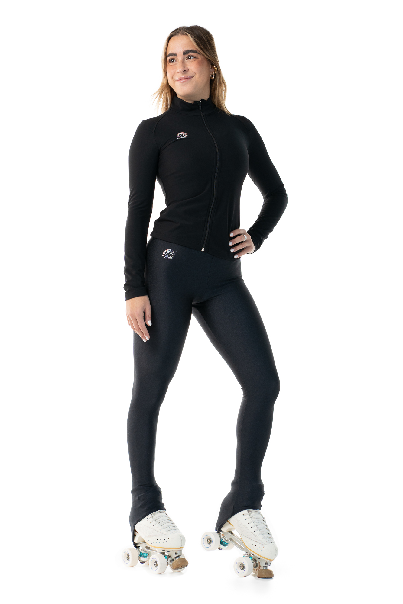 Giacca tecnica in lycra premium, leggera ed elastica. Perfetta per allenamento, pattinaggio e ginnastica, con vestibilità slim e comfort totale. Colore: nero.