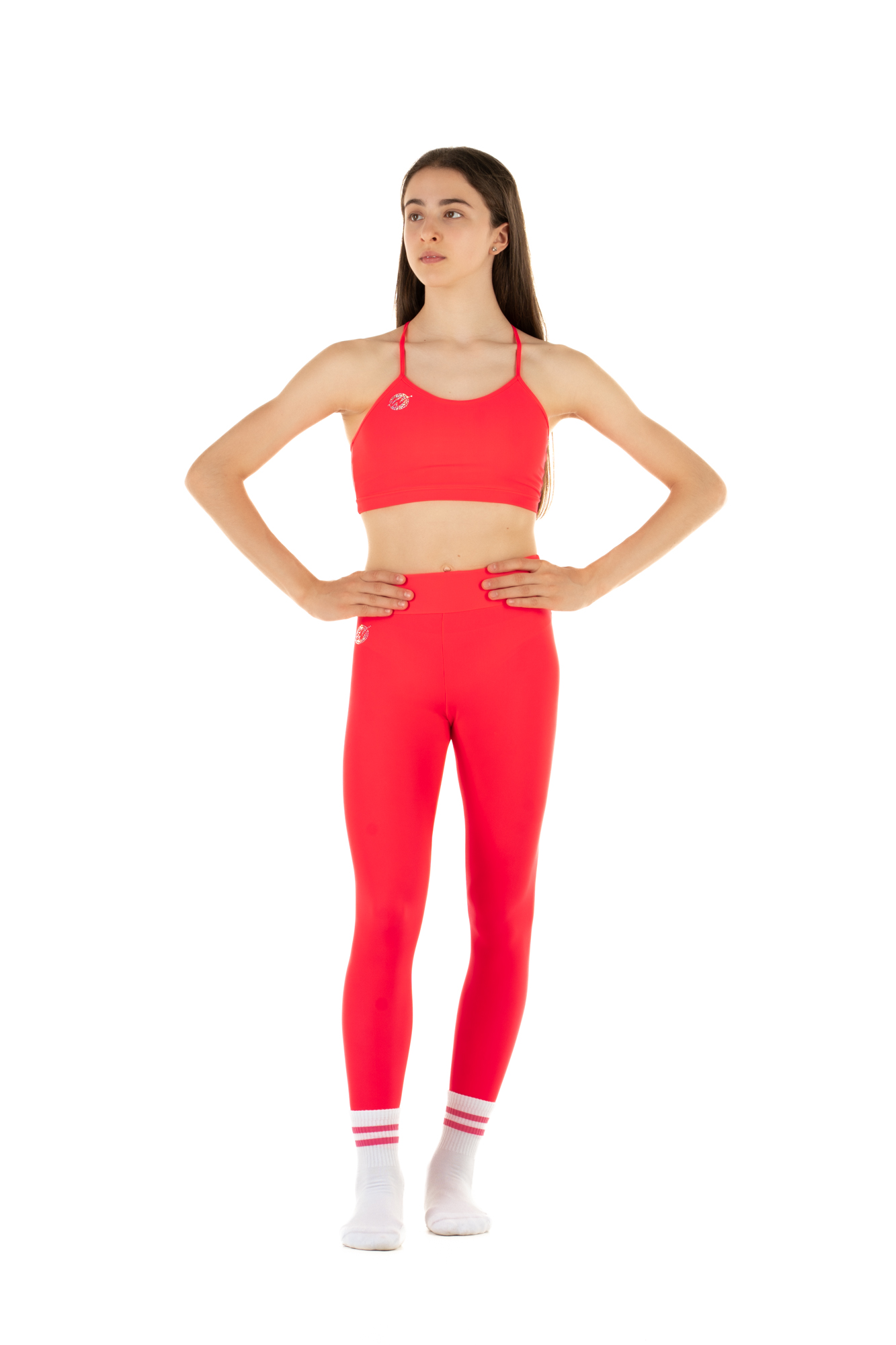 Leggings Wave Basic Rosso Fluo Bambina